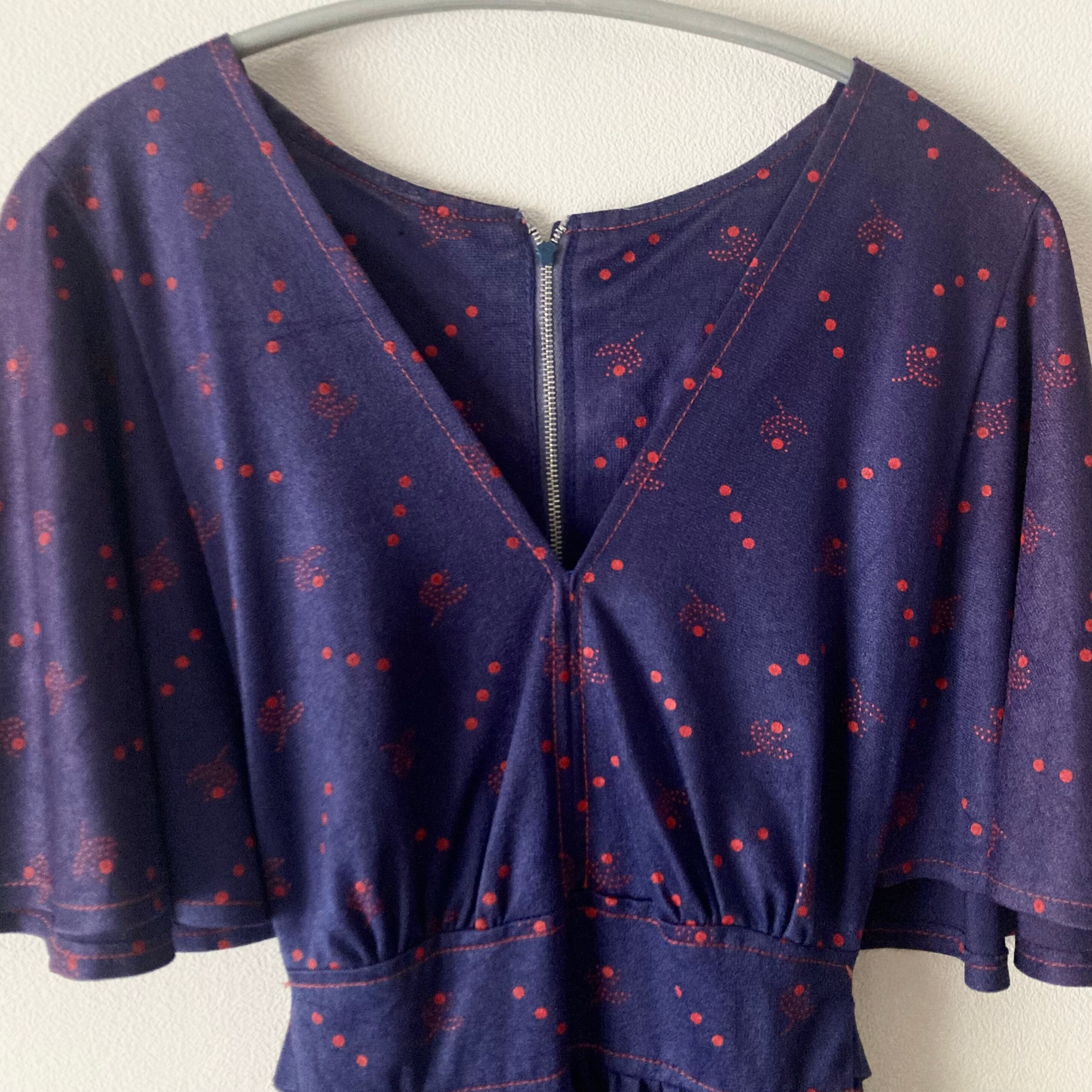 バックリボンで結ぶデザインのヴィンテージブラウスです。
