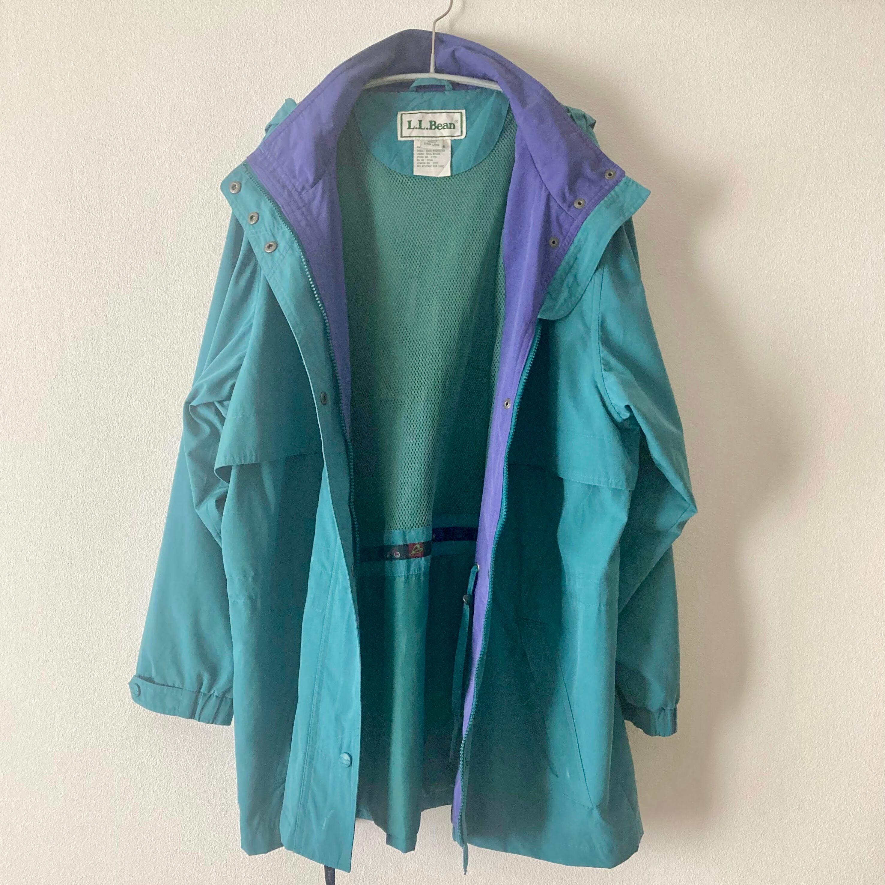 淡いパープルとグリーンの配色がLL.Beanらしいフード付きマウンテンパーカーです。